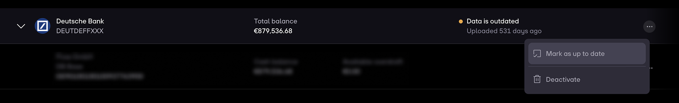 1. If there weren’t any new transactions in the last weeks, you can click on Mark as up to date behind the bank name.