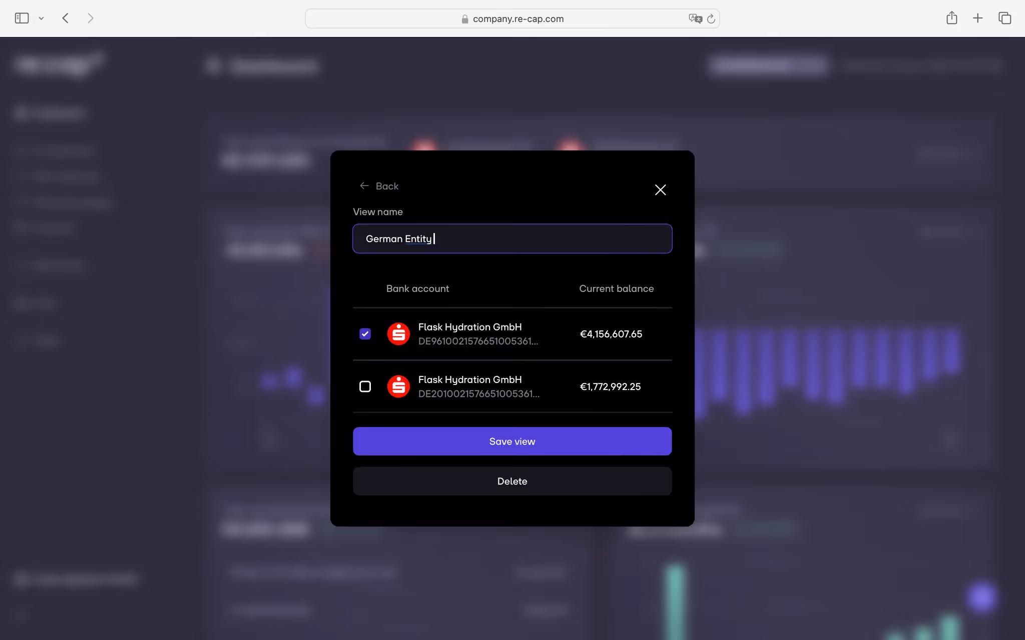 4. Select one or multiple bank accounts that you want included in this view. Give your view a name and click on Save view.