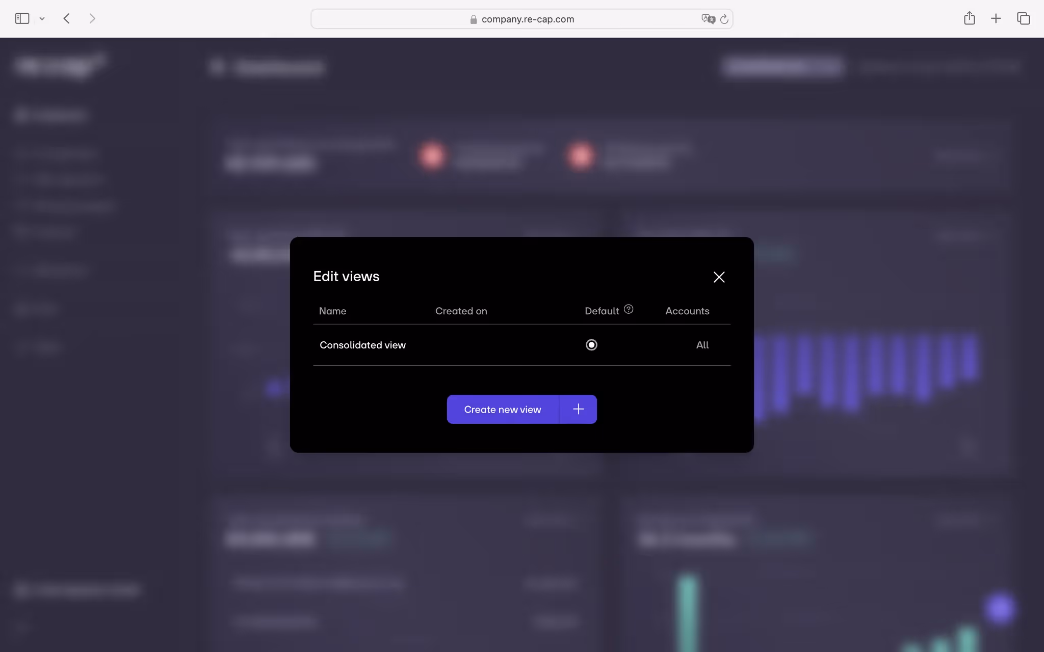 5. Once done, close the modal and select your new consolidated view in the Liquidity dashboard.